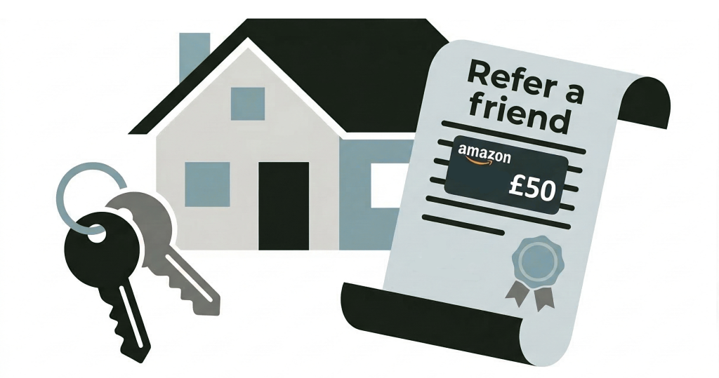 3. Enjoy your reward: Within 28 days of their property transaction completing, we’ll email both of you a £50 Amazon voucher to say thank you.